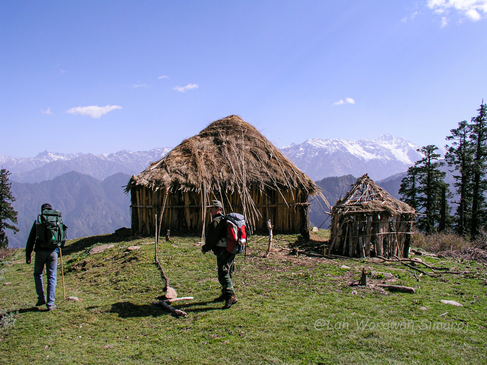 A 9-day trek to Har-Ki-Doon Valley in the Western Garhwal Himalayas of Uttaranchal Province, northeast India was our mission. Recently opened in 2002, this route of the ‘National Himalayan Trekking Expedition’ was arranged by the Youth Hostels Association of India (YHAI). This was the third year that the route was being followed and we were the third expedition group of the season. It was a long 9-day trek covering approximately 92 km. We began at Sankri Base Camp at an altitude of 5,800 ft., before climbing to 12,000 ft. and traversing the snow-covered peak of Kedar Kantha. We then dropped slightly in elevation to reach our destination at 11,200 ft. before trekking back down to Base Camp.