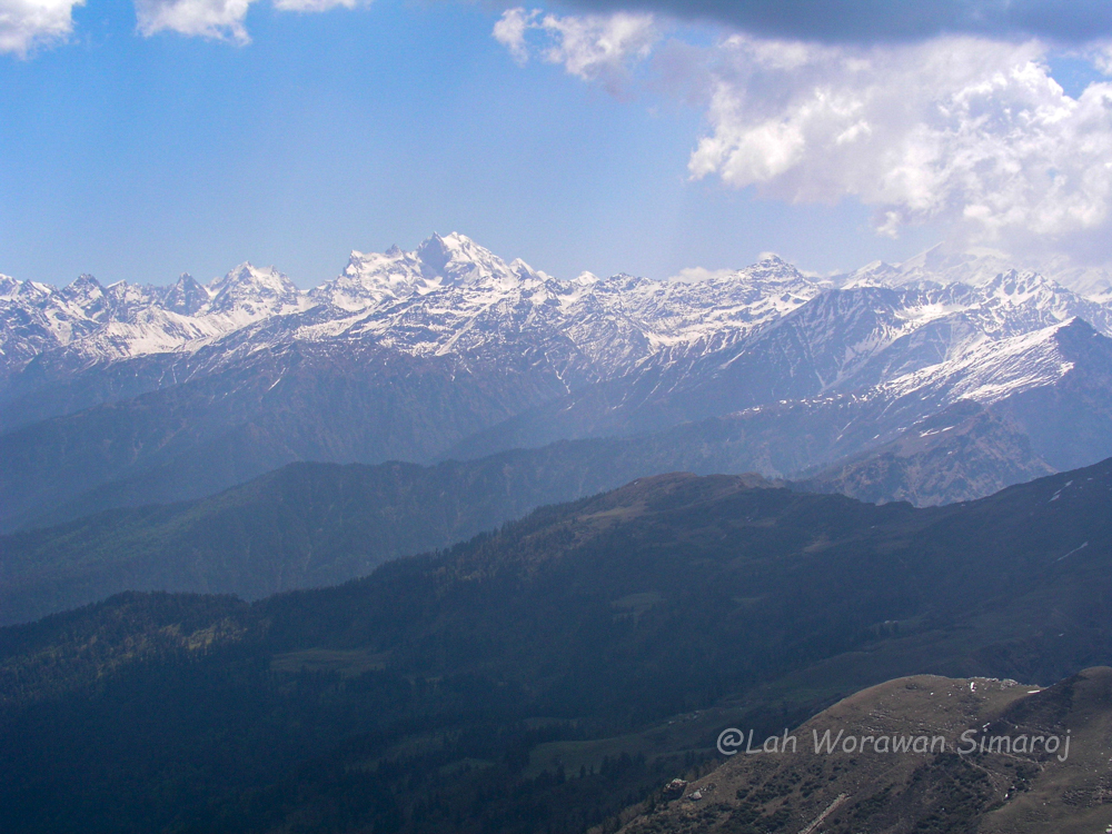 The expedition itself actually started after checking in at the Youth Hostel in Mussourie, ‘The Queen of Hills’, a popular Indian hill resort at an elevation of 6,000 ft. The site was discovered by British troops during their period of colonialism and has now become a popular spot for newly-weds and vacationing families, since it is only 270 km. from Delhi. The area has several waterfalls, cool weather, and superb views of mountains and valleys. After a night in Mussourie, we piled onto a specially arranged ‘trekkers’ bus and transferred to Sankri Base Camp. Though only 175 km. away, the journey took more than 8 hours! The route twisted and turned through hills and valleys till some of us started to feel very sick. We stopped briefly at a local village (mainly for a pee and a cup of tea) and then once again in the middle of some pinewoods for a lunch that had been prepared by the youth hostel. Hanuman Langurs, macaques, and several species of high-altitude birds could be seen along the route so long as the long, tiring, bone-numbing journey didn’t kill you first. We arrived at Sankri Base Camp at 5 p.m. where the camp leaders and other staff were waiting to greet us. They gave us an orientation of the site and then allocated us to large tents that separated the men and the women. This was the only campsite where we had proper toilets. We did not start trekking the next morning, but instead had a day acclimatizing to the altitude, which included morning exercise, a two-kilometre uphill trek and abseiling. The day finished with a short visit to the local village and stunning views of the sunset over the majestic snow-capped peak of Swargarohini, towards which we would start trekking tomorrow.