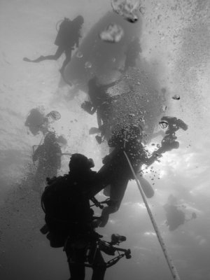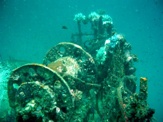 On the day we were to dive at Labuan, visibility was rather poor so we only managed to survey two of the four wrecks. Mabini Padre, better known as Blue Water Wreck, was an 80-metre-long Philippine trawler lying on her port side at a depth of 35 metres. At her shallowest, she was about 22 metres from the surface. I knew that I couldn’t stay very long at that depth but fortunately our boat had some Nitrox tanks that allowed us to stay underwater for longer. We were not disappointed as the wreck welcomed us to its garden of soft corals, with Batfish and barracudas waiting to escort us on board. The wreck itself was still in very good condition making it an especially beautiful attraction for wreck-diving enthusiasts. After spending some time admiring the eerie scene in front of me, I swam down a little deeper. Just above the propeller, I discovered the scattered white bones of a turtle, which reminded me to do my safety stop and return to the surface!