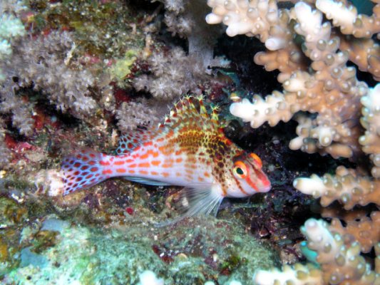 The renowned reefs of Layang-Layang are famous for their shoals of pelagic fish, especially hammerhead sharks. We were not disappointed. On 3 of our 5 dives here, we successfully encountered both single and schooling Scalloped Hammerhead Sharks, passing close by as we headed out from the reef into the deep blue world. To add to the excitement, we also witnessed a school of devil rays swooping nearby; on another occasion, a large school of Jackfish circled above the deep chasm of the ocean floor. As we swam back to the reef, Blacktip Reef Sharks, enormous tunas, turtles, and many other large creatures welcomed our return. Before surfacing, we always regrouped at a huge giant clam and nearby pinkish Leaf Scorpionfish who proclaimed ownership of the exuberantly diverse reef. All our diving took place on the more sheltered eastern side of the atoll, at sites such as The Point, Dogtooth Lair, and Wreck Point. The tail end of a typhoon, that was moving through the South China Seas towards the Philippines, prevented us from exploring any further. However, the swell and surge of the sea could not stop us from enjoying a relaxing last dive to see exquisite tiny creatures such as Pygmy Seahorses, numerous colourful nudibranchs and other benthic fauna hiding among the beautiful sea fans and soft corals of this fantastic and dramatic ‘wall’.