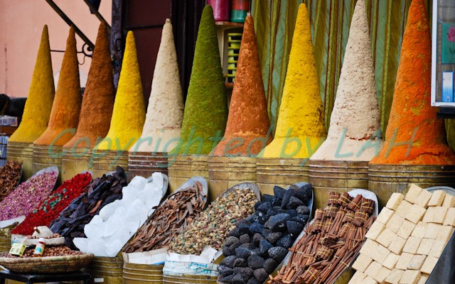 เย็นวันนั้น พวกเรากลับมาที่ตลาดพื้นเมือง (Souk) และจตุรัสอันลือชื่ออีกครั้ง คราวนี้เรามาถึงก่อนพระอาทิตย์ตก เพื่อขึ้นไปนั่งจิบชามินต์พื้นเมือง บนดาดฟ้าอาคารรอบๆ ที่สามารถมองเห็นเขตเมดิน่า เมืองเก่าของเมือง ร้านค้า ตลาดและลานที่เต็มไปด้วยชีวิตชีวาแห่งนี้อย่างเต็มที่ รอเวลาอาทิตย์อัศดงริมขอบภูเขาแอตลาสที่เห็นอยู่ไกลๆ แสงไฟจากร้านค้าเริ่มสว่างไสวมากขึ้น เมื่ออาทิตย์เริ่มอ่อนแสง อากาศเริ่มเย็นลงทันทีเมื่อแสงหมด พวกเราขยับตัวลงไปผจญภัยในตลาดพื้นเมืองที่มีร้านค้ามากมายดั่งเขาวงกตด้านล่าง การซื้อของในโมร็อคโคนั่น การต่อรองราคาอย่างเมามันเป็นเรื่องที่ไม่อาจหลีกเลี่ยงได้ เพราะราคาที่พ่อค้าบอกมานั้นอาจสูงกว่าราคาจริงอย่างไม่น่าเชื่อเพื่อให้เกิดการเจรจา ต่อรองกัน หลังจากนั้นจะตาดีได้ตาร้ายเสียอย่างไรก็ขึ้นอยู่กับศิลปะในการต่อรองเท่านั้น วิธีที่ดีที่สุดคือควรมีราคาของอยู่ในใจแล้ว เพราะทันทีที่พ่อค้าบอกราคาแรกมา และเราส่ายหัว เขาจะถามกลับทันทีว่าเราให้เท่าไร และดูจากราคาที่เราบอกไปว่าจะขายให้ได้หรือเปล่า ของบางอย่างพวกเราพบว่าพ่อค้าบอกราคามาสูงกว่าความเป็นจริงเป็นสิบเท่า นอกจากนี้ จะมีคนคอยเดินตามตื้อให้ซื้อของตลอดเวลา ถ้าเราเข้าร้านนั้นแล้วยังตกลงราคากันไม่ได้ บางทีจะถูกเดินตามต่อรองราคาอยู่เป็นครึ่งชั่วโมงเลยทีเดียว อย่างไรก็ดี พวกเราพบว่าวัฒนธรรมการต่อรองราคาแบบนี้ เป็นการสร้างสัมพันธภาพได้อย่างดีระหว่างผู้ซื้อและผู้ขาย เพราะนอกจากการต่อรองราคาแล้ว คำสนทนาจะปนเปไปกับการคุยเล่น ถามไถ่ความเป็นมา และบางครั้งถึงกับแนะนำสินค้าเจ้าอื่นๆให้ (แถมพาเดินไปหาของที่เราต้องการให้อีกด้วย บางคนยังช่วยต่อราคาให้อีก โดยเฉพาะคนที่พอจะสื่อสารกับพวกเราเป็นภาษาอังกฤษได้) ตลาดพื้นเมืองของเมืองมาราเคชนี้ ว่ากันว่าเป็นตลาดพื้นเมืองที่ใหญ่ที่สุดของโมร็อคโค นอกจากของพื้นเมืองต่างๆเช่น ถ้วยชามเซรามิค หนังอูฐ เสื้อผ้า เครื่องเงิน ไม้แกะสลัก พรมพื้นเมือง โลหะฉลุลาย เครื่องทองเหลืองและของอื่นๆอีกมากมายแล้ว ยังมีของแบกะดินแปลกๆ ยาโดป สมุนไพรวางขายอยู่บนลานกว้างในจตุรัสด้วย นอกเหนือไปจากของกินต่างๆมากมายที่กล่าวถึงไปแล้วในตอนต้น พวกเราลองเดินห่างออกมาจากตลาดที่มีแต่นักท่องเที่ยวออกไปสักนิด เข้าไปดูร้านขายของพื้นเมืองที่เขาขายให้กับชาวบ้านด้วยกัน จะเห็นได้ว่าราคาแตกต่างกันลิบลับ แต่ที่สำคัญร้านที่ขายของทั่วไปให้ชาวโมร็อคโคด้วยกันใช้เองนี้ มักจะพูดภาษาอ