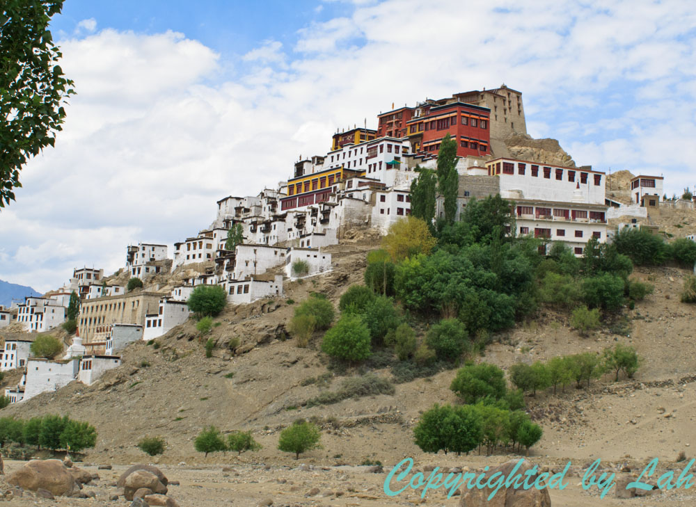 การเที่ยวชมวัดวาอารามและปราสาทเก่าแก่แบบพุทธศาสนานิกายวชิรยานในลาดักห์ ถือเป็นไฮท์ไลท์ที่สำคัญของการท่องเที่ยวที่นี่ นอกเหนือไปจากการเทรคกิ้งและชื่นชมมหัศจรรย์ธรรมชาติในที่สูง ในเส้นทางลงไปทางใต้จากเมืองเลห์ จึงเป็นเส้นทางแรกที่ฉันเลือกแวะเยี่ยมเยียน ในวันแรกๆ เนื่องจากยังไม่ต้องเผชิญกับความเปลี่ยนแปลงของความสูงมากนักจากระดับตัวเมือง นอกจากการต้องปีนป่ายขึ้นไปชมวัดบนเขา (ส่วนใหญ่วัดและปราสาทที่ลาดักห์ ตั้งอยู่บนยอดเขา ต้องเดินขึ้นบันไดสูงขึ้นไปเพื่อเข้าชม) ปราสาทเชย์ (Shey Palace) ตั้งอยู่ห่างจากเลห์ไปประมาณ 15 กม. ถือเป็นหนึ่งในโบราณสถานที่เก่าแก่ที่สุดแห่งหนึ่งของลาดักห์ ที่ก่อสร้างมาตั้งแต่สมัยคริสตศตวรรษที่ 9 เมื่อมีการก่อตั้งราชวงศ์แรกของลาดักห์ใหม่ๆ เพื่อใช้เป็นพระราชวังฤดูร้อน ตัวปราสาทค่อนข้างเก่าและมีบางส่วนอยู่ในระหว่างการบูรณะที่ดูท่าว่าจะไม่มีวันเสร็จ อย่างไรก็ดี ในส่วนของตัววัดที่เรียกว่า monastery มีสถูปสีขาวที่มีป้ายเขียนไว้ว่าสูงที่สุดในเลห์-ลาดักห์ ยอดทองคำแท้ กับพระพุทธรูปปูนปั้นขององค์พระศรีศากยมุนีสูง 12 เมตร ทำจากทองแดงปิดทอง ทาสีสันสวยงาม รวมถึงห้องหับต่างๆกับความเก่าแก่ของตัวอาคาร ก็ถือว่าคุ้มค่าแล้วกับการเดินขึ้นเขาเข้าไปชม