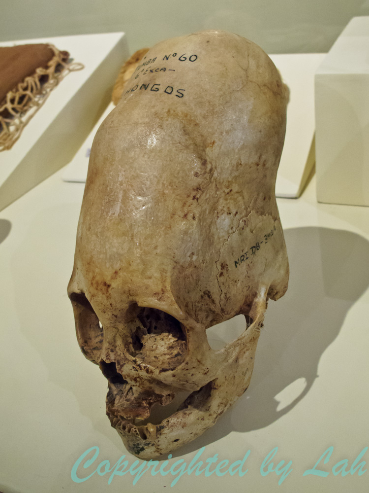 แม้จะไม่ได้เจอสิ่งที่อยากเห็นในบริเวณดังกล่าว แต่ต่อมาฉันก็ได้ยลสมใจ เมื่อได้แวะไปที่พิพิธภัณฑ์ท้องถิ่นที่เมืองอิคา (Museo Regional de Ica) ที่รวบรวมวัตถุโบราณของอารยธรรมเก่าแก่กว่า 2,000 ปีอย่างปารากัส นาสก้า รวมถึงอารยธรรมที่ใหม่กว่าแต่มีชื่อเสียงอย่างอินคา แม้ว่าที่นี่จะโดนปล้นและขโมยเอาวัตถุโบราณไปหลายครั้ง แต่สิ่งที่จัดแสดงอยู่ก็สร้างความตื่นตาตื่นใจได้ไม่น้อย โดยเฉพาะหัวกระโหลกยาว (Elongated Skull) ที่ฉันอยากเห็น คำอธิบายในพิพิธภัณฑ์บอกไว้ว่าคนยุคนั้นนิยมเอาผ้าพันหัวแน่นๆตั้งแต่เด็กเพื่อค่อยๆดัดขยายกระโหลกให้ยาวขึ้น (แบบเดียวกับที่คนจีนสมัยก่อนพยายามพันผ้ารัดให้เท้าเล็กๆ) หัวกระโหลกบางหัวจึงยืดยาวออกไปมากจนแทบไม่น่าเชื่อว่าเป็นหัวมนุษย์ น่าจะเป็นหัวมนุษย์ต่างดาวเสียมากกว่า แต่เขาทำอย่างนี้เพื่ออะไร ไม่มีใครทราบแน่ชัด จึงมีบางคนให้ความเห็นไว้ว่า เป็นไปได้หรือไม่ที่มนุษย์ในสมัยนั้นได้เห็นหน้าค่าตาของมนุษย์ต่างดาวที่มีหัวยาวและความเฉลียวฉลาดหรือวิทยาการที่ก้าวหน้าของพวกเขา จึงต้องการทำหัวให้เป็นแบบมนุษย์ต่างดาวเหล่านั้นเผื่อจะได้เฉลียวฉลาดแบบเดียวกันบ้าง? นอกจากนี้ กระโหลกหัวยาวเหล่านี้มีกระจัดกระจายอยู่ทั่วๆไปหลายที่ รวมถึงที่ยังเก็บไว้ในกรุยังไม่ได้รับการบูรณะหรือพิสูจน์อะไรอีกเป็นร้อยๆพันๆ เป็นไปได้หรือไม่ว่าจะมีหัวกระโหลกของมนุษย์ต่างดาวปนอยู่ด้วย!? ที่น่าสนใจสำหรับฉันอีกอย่างคือการที่กระโหลกหลายๆหัวถูกเจาะรู หรือตัดกระโหลกศีรษะเป็นช่อง (แม้จะไม่ใช่กระโหลกหัวยาวก็ตาม) คำอธิบายในพิพิธภัณฑ์ได้อธิบายถึงขึ้นตอนการตัด และวัตถุประสงค์ว่าเพื่อใช้รักษาโรคทางสมองหรือทางจิตบางอย่าง (เช่นดูดเอาความชั่วร้ายออกไปจากหัว) แต่ที่โดนเจาะเป็นรูๆนั้น ว่ากันว่า หากไม่ใช่การกระทำเพื่อบวงสรวงหรือพิธีกรรมอะไรบางอย่าง ก็อาจเป็นการเจาะรูเพื่อร้อยหัวห้อยเอวในวัฒนธรรมล่าหัวมนุษย์!! ฉันว่าถ้าอยู่ในห้องมัมมี่และหัวกระโหลกนานมากไปใจอาจจะเตลิดฟุ้งซ่านไปเสียก่อน ฉันเลยย้ายตัวเองไปชมความงามของวัตถุโบราณอย่างอื่นดีกว่า อารยธรรมปารากัสขึ้นชื่อเรื่องสิ่งทอที่มีลวดลายแปลกตางดงามมาก จนเป็นที่ต้องการของนักสะสม ผ้าโบราณแท้ๆผืนใหญ่ๆที่สมบูรณ์อาจมีค่าเป็นล้านๆบาทได้ และฉันก็เห็นความงดงามจริงตามนั้น แม้ว่าผ้าผืนใหญ่ๆจะอยู่ในสภาพที่ไม่ค่อยสมบูรณ์มากนัก แต่ก็เห็นได้ถึงความละเอียดและสไตล์ที่แตกต่างจากอารยธรรมอื่นๆ จากนั้น ฉันเดินต่อไปชมเครื่องปั้นดินเผาที่มีรูปทรงและลวดล