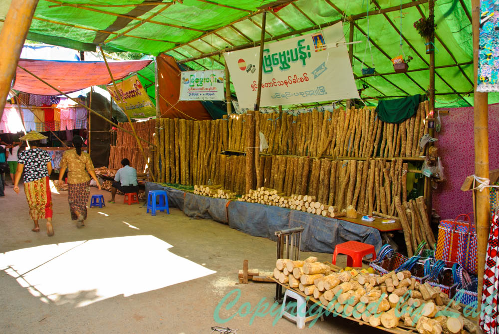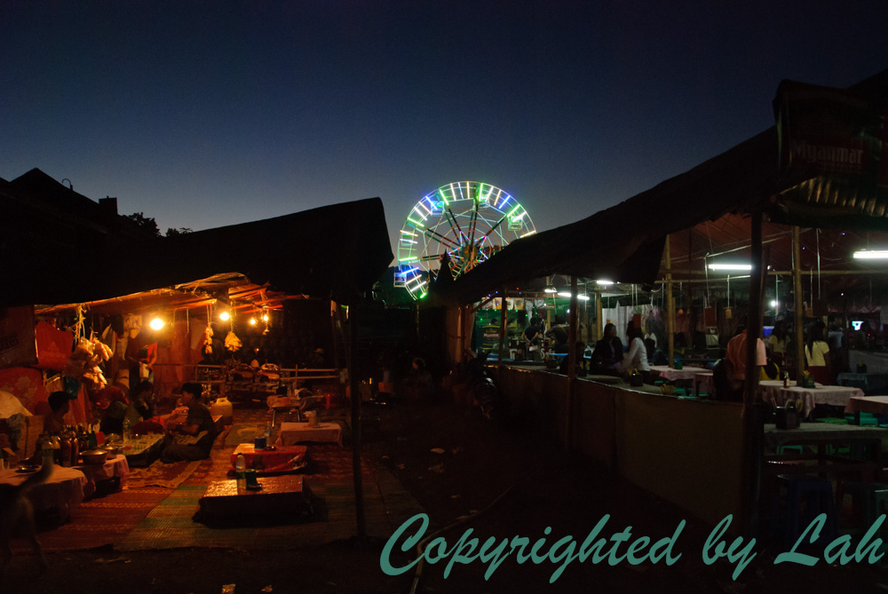 หลังจากเข้าที่พักเรียบร้อย ฉันสอบถามถึงเส้นทางแห่เรือที่จะมาที่นี่ และเดินไปที่ริมลำน้ำสายเล็กๆในเมืองที่ไหลต่อเนื่องเชื่อมกับทะเลสาป เพื่อติดต่อเรือยนต์ไปเที่ยวชมทะเลสาปและงานบุญในครั้งนี้สำหรับวันรุ่งขึ้น แล้วจึงออกเดินเที่ยวในตลาดวัดชั่วคราวที่ถูกสร้างขึ้นเพื่องานบุญนี้ มีขายของทุกอย่างตั้งแต่ขนม ของกิน ไม้ทานาค่า (นำเปลือกไม้มาฝนเป็นแป้งทาหน้า) ของเล่น ซีดี หม้อ ไฟ กะทะ เสื้อผ้า ของใช้ไปจนถึงเฟอร์นิเจอร์งานไม้ต่างๆอย่างเพลิดเพลิน ก่อนทดลองชิมอาหารพื้นเมืองของชาวไทใหญ่ ชาวพื้นเมืองส่วนใหญ่ของรัฐฉานอย่างเอร็ดอร่อยถูกปากเป็นอย่างยิ่ง เนื่องจากมีหน้าตาและรสชาติคล้ายอาหารเหนือบางอย่างของบ้านเรานั่นเอง