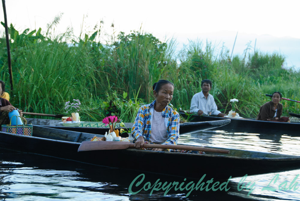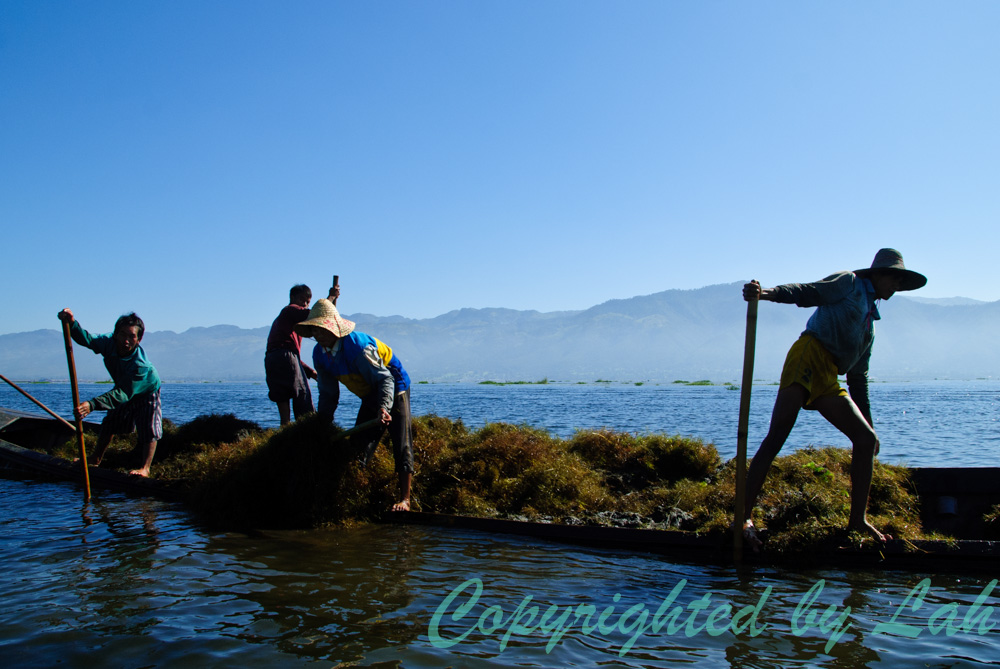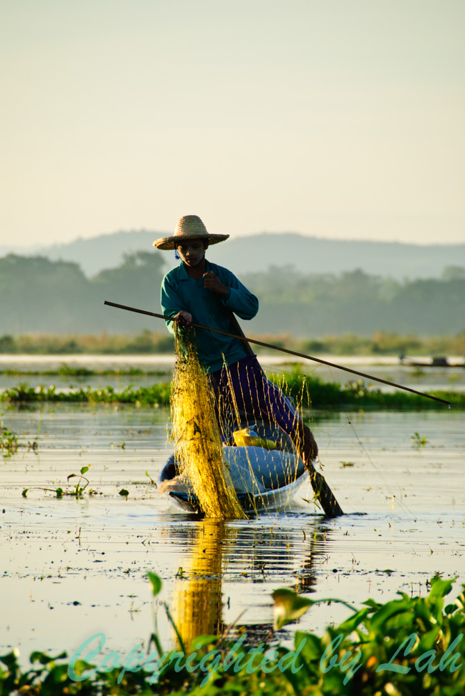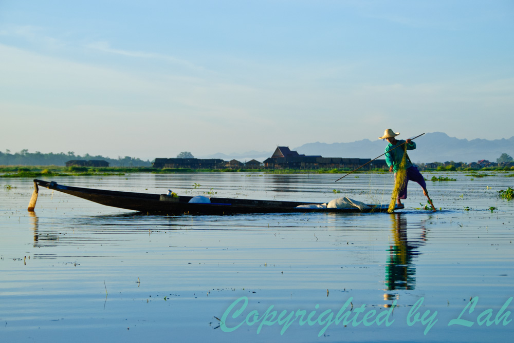 วันต่อมา ฉันจ้างเรือเพื่อออกเที่ยวชมทะเลสาปอินเลแต่เช้าตรู่ ในช่วงพระอาทิตย์ขึ้น ซึ่งมีบรรยากาศเงียบสงบเป็นอย่างยิ่ง อีกทั้งแดดก็ไม่ร้อน เห็นชาวอินทา (Intha) ชาวพื้นเมืองอีกเชื้อชาติหนึ่งที่ใช้ชีวิตอยู่บริเวณรอบๆทะเลสาปแห่งนี้ และเป็นผู้เชี่ยวชาญในการใช้เท้าพายเรือ มือเหวี่ยงแหจับปลาในทะเลสาปออกเรือหาปลากันแต่เช้า แม้ว่าส่วนใหญ่จะไม่ได้ใส่ชุดพื้นเมืองผ้าฝ้ายกางเกงชาวเลอย่างในพิธีแล้ว แต่ก็ยังเห็นทักษะการใช้เท้าบังคับพายเพื่อบังคับเรืออีกต่อหนึ่ง ในขณะที่มือก็สาวแหจับปลาไปด้วยได้เป็นอย่างดี ว่ากันว่า ชื่อ”อินทา” แปลว่าบุตรของทะเลสาป สมกับที่พวกเขามีความเชี่ยวชาญในการใช้ชีวิตบนทะเลสาป และการใช้ขาพายเรือนั้นว่ากันว่า ก็เพื่อที่จะได้เห็นวิวเหนือท้องทะเลสาปและพืชน้ำต่างๆในทะเลสาปได้อย่างชัดเจนนั่นเอง นอกจากการจับปลาแล้วชาวอินทายังมีการเก็บสาหร่ายในน้ำไปทำเป็นพื้นของแปลงผักลอยน้ำอีกด้วย โดยนำสาหร่ายผูกติดกับเสาไม้ไผ่ต่อกันเป็นแพ พืชที่ปลูกจะมีทั้งพืชผักสวนครัวต่างๆและผลไม้ เช่น มะเชือเทศ เป็นต้น