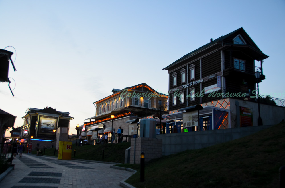 ฉันได้ที่พักตรงบริเวณที่เรียกว่า “130th District” หรือเรียกอีกชื่อหนึ่งว่าอีร์คุสตค์สโลโบด้า (Irkutsk Sloboda) ที่เป็นเขตการตั้งถิ่นฐานเดิมของเมืองที่ได้รับการบูรณะขึ้นมาใหม่เมื่อปี ค.ศ. 2011 โดยสร้างตามแบบผังเมืองเดิมและตัวอาคารที่เป็นสถาปัตยกรรมแบบเดิมๆ (สร้างจากไม้ซุง) เมื่อร้อยสองร้อยปีที่แล้ว บริเวณนี้เคยถูกไฟไหม้และกลายเป็นแหล่งเสื่อมโทรมก่อนที่จะถูกบูรณะปรับปรุงขึ้นใหม่ จนกลายเป็นศูนย์กลางการท่องเที่ยวของเมืองที่มีถนนคนเดิน ร้านอาหาร ผับ บาร์ โรงแรม ร้านขายของที่ระลึก ในบรรยากาศร่วมสมัยที่รายล้อมด้วยความเป็นเอกลักษณ์ของสถาปัตยกรรมดั้งเดิมที่เป็นเสน่ห์ของเมืองในปัจจุบัน ตลอดทั้งวันจะมีทั้งนักท่องเที่ยวและชาวเมืองเองมากินดื่ม เดินเล่นและดื่มด่ำกับบรรยากาศในบริเวณนี้ โดยเริ่มต้นที่รูปปั้นตัวบาบร์ (Babr) คาบตัวเซเบิล (Sable) หรือเสือคาบหมาไน สัญลักษณ์แห่งความโดดเด่น พลังอำนาจและความมั่งคั่งของเมือง ที่ใช้เป็นตราประจำเมือง (Code of Arms) ไปจนสุดปลายถนนอีกด้านหนึ่งที่เป็นที่ตั้งของห้างขนาดใหญ่