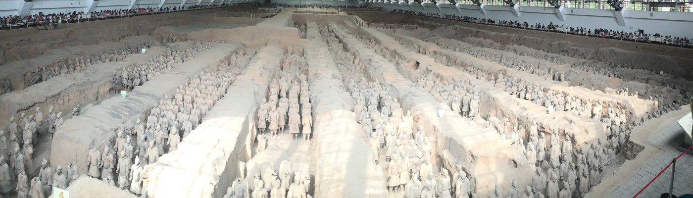 สอง. สุสานทหารจิ๋นซีฮ่องเต้ Terracotta Army หรือ Terracotta Warriors สถานที่ที่เป็นเป้าหมายหลักของผู้ที่มาเที่ยวซีอานแทบทุกคน เรียกว่าไม่ไปไม่ได้ ตัวสุสานตั้งห่างจากตัวเมืองไปประมาณเกือบๆหนึ่งชั่วโมงรถประจำทาง เสียค่าเข้าชมคนละ 150 หยวน อยากได้ไกด์ก็หาเอาหน้าทางเข้าได้เลย รับรองว่ามีเดินมาถามเพียบ หรือจะเช่า Audio Guide เอาก็ได้ แต่ต้องเดินกลับเอามาคืนที่เดิม (ทางเข้ากับทางออก อยู่ไกลกันพอควร) เข้าไปแล้วต้องเดินผ่านสวนไปอีกประมาณ 5-10 นาทีกว่าจะถึงสถานที่ขุดค้นที่แบ่งออกเป็น 3 หลุม (Pits) หลุมขุดค้นแรกเป็นหลุมขุดค้นที่เก่าแก่ที่สุด และเป็นหลุมที่จะได้เห็นทหารยืนเรียงกันแบบที่เห็นคุ้นตากันในรูปทั่วๆไป นี่ขนาดขุดค้นกันมาระดับหนึ่งตั้งแต่ช่วงปีทศวรรษ 1970 แล้ว ปัจจุบันก็ยังไม่เสร็จ หากเมื่อได้เดินดูไปเรื่อยๆแล้วถึงเข้าในว่าทำไมเขาถึงทำไม่เสร็จสักที เพราะจริงๆซากกองทัพเหล่านี้ ตอนขุดค้นก็เป็นซากปรักหักพัง เขาต้องค่อยๆเอามาเสริมเติมต่อที่ละรูปปั้น ได้แค่นี้ก็ถือว่าเป็นความพยายามมากแล้ว นี่เพราะชาวนามาเจาะหาน้ำบาดาลแท้ๆเชียว (เจาะลงไปเจอเครื่องดินเผา) ถึงได้เกิดงานขุดค้นที่สำคัญและยิ่งใหญ่ที่สุดในประวัติศาสตร์กันเลยทีเดียว ส่วนหลุมขุดค้น 2 และ 3 นั้น เทียบกับหลุม 1 แล้ว แทบจะเรียกได้ว่ามีแต่หลุม จะมีทหารและม้ายืนอยู่ให้เห็นไม่กี่ตัว ที่เหลือเหมือนเป็นการแสดงหลุมขุดค้นและซากปรักหักพังที่พบให้ชมมากกว่า (ยังไม่ได้บูรณะ) จะมีหุ่นที่สมบูรณ์แล้วอยู่ไม่กี่ตัวที่จัดแสดงอยู่ในตู้กระจกข้างๆหลุมขุดค้น ที่ควรเข้าไปดูอีกทีคือพิพิธภัณฑ์ที่จัดแดงรถเทียมม้ากับคนขับสองคัน ที่สายประดับต่างๆและบังเหียนต่างๆ ทำจากเงินและทองคำแท้ๆ (สุสานทหารจิ๋นซีแห่งนี้เป็นมรดกโลกที่ต้องไปให้เห็นกับตา แต่ต้องฟันฝ่ากับเหล่าคนนักท่องเที่ยวคนจีนอีกมหาศาลด้วยเช่นกัน)