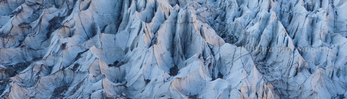 หลังจากเพิ่มความอ่อนเยาว์ให้ผิวพรรณและเพิ่มพลังให้ร่างกายแล้ว ก็ได้เวลาออกแรงเดินขึ้นเขาเล็กๆ เพื่อไปชมความงามของ Passu Glacier (ธารน้ำแข็งพัซซุ) โดยการเดินเลาะขอบหน้าผาของแนวร่องธารน้ำแข็งไปจนถึงจุดชมวิวธารน้ำแข็งที่ยังไม่ละลายได้อย่างใกล้ชิด ยามเมื่อมองไกลๆ ฉันคิดว่าเป็นประติมากรรมหินขนาดยักษ์ออกสีขาวๆตามธรรมชาติที่ถูกกัดเซาะเป็นริ้วๆมากกว่า แต่พอยิ่งเดินเข้าไปใกล้ก็รู้ว่ามันไม่ใช่หินแต่เป็นน้ำแข็งของแท้ที่กว้างใหญ่สุดลูกหูลูกตา มีลักษณะเป็นซอกหลืบ แหลม เหลี่ยม โค้งเว้า กินพื้นที่ครอบคลุมถึง 115 ตร.กม. และยาวถึง 20.5 กม. ทอดยาวไปถึงยอดเขา Passu (7,478 เมตร) ทางด้านบนที่ไกลออกไป แถมยังมีไออากาศเย็นๆจนหนาวเหน็บของน้ำแข็งมากระทบผิวเป็นระยะๆ แม้หนทางในการเทรคกิ้งเล็กๆนี้จะไม่ไกลมาก แต่ด้วยระดับความสูงของพื้นที่ก็ทำให้คนพื้นราบอย่างพวกฉันหายใจหอบกันเป็นพักๆ แต่วิวทิวทัศน์ที่ได้เห็นก็น่ารื่นรมย์สมความตั้งใจการออกนอกเส้นทางถนนลาดยางอย่างดีของ KKH มาเที่ยวชมเป็นอย่างยิ่ง