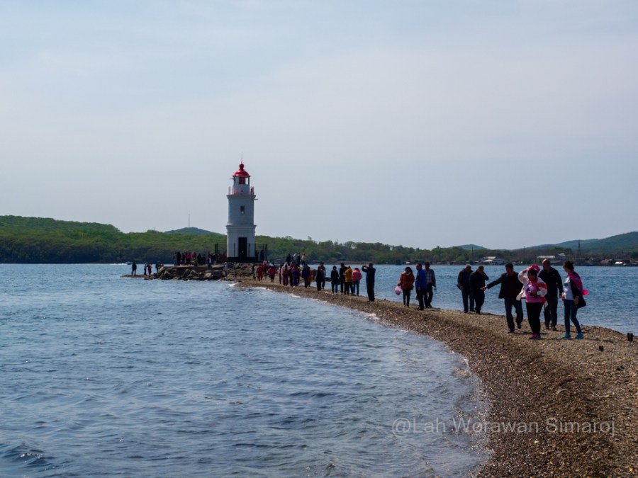 และเพื่อให้ได้ความรู้สึกของความเป็นรัสเซียตะวันออกไกลอีกหน่อย เลยจากตัวเมืองออกไปจนจรดทะเลทางด้านตะวันออก จะเป็นที่ตั้งของประภาคาร Tokarevsky (โตกาเรฟสกี) สร้างครั้งแรกเมื่อประมาณปี 1876 โดยการรวมเงินของนักธุรกิจชาวจีนที่เข้ามาค้าขายในยุคนั้น ถือเป็นผืนดินสุดท้ายของตัวทวีปก่อนเข้าสู่มหาสมุทรแปซิฟิค และเป็น Landmark สำคัญของเมือง ตัวประภาคารแปดเหลี่ยมสีขาวสูง 11.9 เมตร (สร้างขึ้นใหม่ภายหลังในปี 1910) ตั้งอยู่บนสันดอนจะงอยทรายที่น้ำท่วมถึงในช่วงที่น้ำขึ้นสูง ในช่วงหน้าหนาวอาจมีโอกาสได้เห็นแมวน้ำลายจุด (Spotted Seals) ที่ว่ายน้ำไปมาแถวนั้นหรือขึ้นมานอนอาบแดดเล่นแถวๆกองหินตรงประภาคารอีกด้วย อย่างไรก็ดี เนื่องจากเป็นแลนด์มาร์กจุดปักหมุดขอบทวีปแห่งรัสเซีย จึงหนีไม่พ้นที่จะเป็นจุดท็อปฮิตของนักท่องเที่ยว (โดยเฉพาะชาวจีน) มากมายที่มารวมตัวกันบนสันดอนทรายแคบๆบริเวณประภาคารแห่งนี้