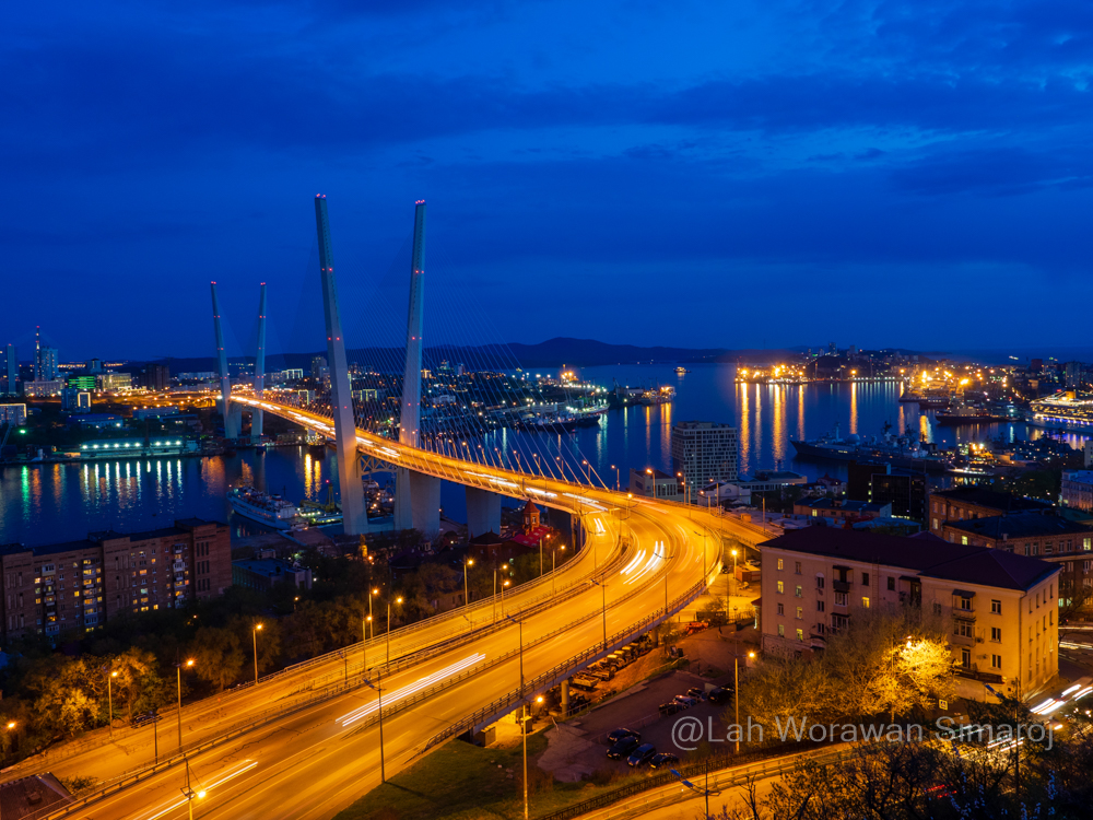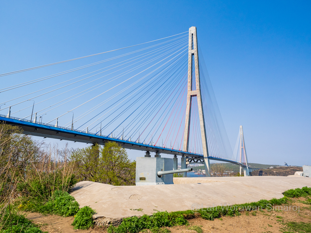 Vladivostok มีสะพานแขวนสองแห่งที่สร้างขึ้นเพื่อต้อนรับการประชุม APEC ตามที่กล่าวข้างต้น หนึ่งคือสะพาน Zolotoy Bridge หรือ Golden Bridge ที่ผาดผ่านอ่าว Zolotoy Rog หรือรู้จักกันโดยทั่วไปว่า Golden Horn Bay สะพานแขวนแห่งนี้หากมองไกลๆจะเห็นเสาสะพานแขวนที่ปลายแยกออกจากกันเหมือนกะโดงเรือ ใกล้ๆกันมีเนินเขาที่เป็นจุดชมวิวสะพานและตัวอ่าวที่เป็นมุมมหาชนที่ไม่ควรพลาดโดยเฉพาะอย่างยิ่งช่วงตะวันตกดิน วิวที่เห็นจากบนเนินนี้ช่วยให้เข้าใจได้เป็นอย่างดีว่าทำไมที่นี่จึงได้รับการขนานนามว่าเป็นซานฟรานซิสโกแห่งรัสเซีย ขอแนะนำว่าหากได้มีโอกาสนั่งรถผ่านไปบนสะพานนี้อย่าลืมมองหาเรือดำน้ำที่ยังใช้การได้จริงจอดอยู่ในทะเลบริเวณที่ตั้งฐานทัพเรือแถวนั้นด้วย… ส่วนอีกหนึ่งสะพานนั้นสร้างขึ้นเพื่อข้ามช่องแคบบอสฟอรัสตะวันออกไปยัง Russky Island (เกาะรุสสกี) ตัวสะพานจึงมีชื่อว่า Russky Bridge ซึ่งเป็นสะพานแขวนที่มีช่วงกว้างของการยึดลวดสลิงที่ยาวที่สุดในโลก ณ ปัจจุบัน (1,104 เมตร) ใต้ฐานเสาสะพานยังเป็นที่ตั้งของป้อมปืนที่สามารถหาทางลงไปเดินเล่นถ่ายรูปได้อีกด้วย