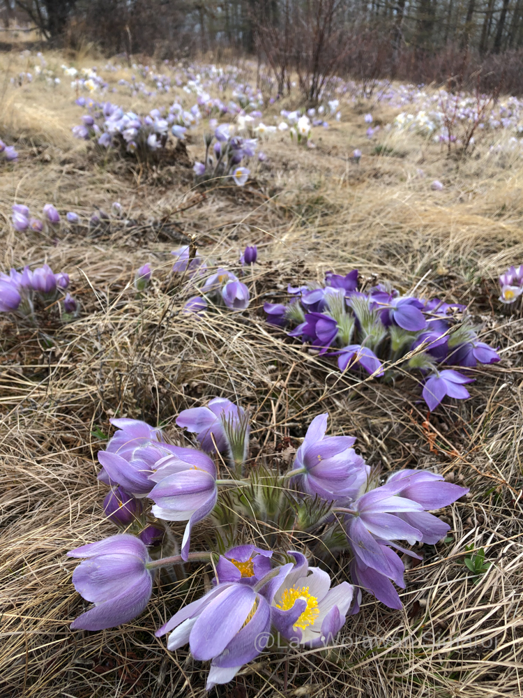 ระหว่างเส้นทางเดินต่างๆในช่วงเดือนนี้ สังเกตดีๆจะเห็นดอกไม้ป่าต่างๆมากมาย ทั้งดอกสีแดงเล็กๆของสนลาร์ช ดอกหญ้าชนิดต่างๆ ดอกไอริช และที่น่าตื่นตาตื่นใจคือทุ่งดอก Snowflowers ที่เรียกแบบนี้เพราะดอกไม้สีออกม่วงๆขาวๆนี้จะบานแย้มออกมาเป็นดอกแรกๆหลังจากที่หิมะละลาย อีกทั้งยังมีสัตว์ป่าน่ารักอย่างกระรอกดินหางยาว (Long-tailed Ground Squirrel) วิ่งขึ้นลงรูให้ได้เห็น แต่สิ่งที่ต้องระวังเป็นอย่างยิ่งในระหว่างเส้นทางท่ามกลางความงามตามธรรมชาติ คือไม่ควรเดินออกนอกเทรลปกติที่คนอื่นๆเขาเดิน โดยเฉพาะในบริเวณทุ่งหญ้าที่เพิ่งขึ้นใหม่ๆ เนื่องจากช่วงฤดูนี้เป็นช่วงที่เห็บป่าระบาด ซึ่งเห็บป่าไซบีเรียนี่เป็นพาหะนำโรคไลม์ (Lyme Disease) ที่ค่อนข้างร้ายแรงพอสมควร แต่คนไทยไม่ค่อยรู้จักกัน หากถูกเห็บที่นี่กัดจึงควรไปตรวจหาเชื้อที่โรงพยาบาลให้เร็วที่สุด