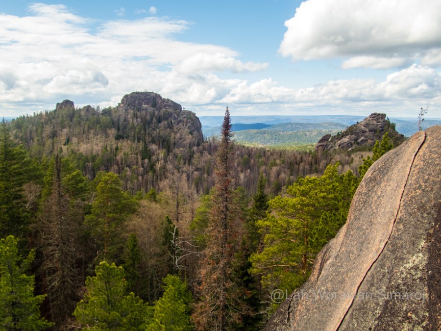 จริงๆแล้วนอกจากแท่งหินและป่าสนไทก้า ในอุทยานฯ ยังมีสัตว์ป่าหลากหลายชนิดทั้งหมี หมาป่า กวาง หมาไม้ไซบีเรีย (Sable) กระต่ายป่า กระรอก และนกชนิดต่างๆ รวมถึงมอส ไลเคน เห็ด ดอกไม้ป่ามากมาย… แต่สัตว์ป่าส่วนใหญ่อยู่ลึกเข้าไปในอุทยานฯที่ไม่เปิดให้คนทั่วไปเข้าถึง ยกเว้นจะโชคดีเจอพวกมันเข้ามาบริเวณใกล้ๆเส้นทางเดินเอง ภายในอุทยานฯ มีบ้านพักและลานกางเต๊นท์ ใกล้ๆกับเทรลเดินชมแท่งหิน ในกรณีที่จองบ้านพักสามารถเอารถเข้าไปได้ถึงจุดพัก (บังกะโลแยกหลัง ห้องน้ำรวม ส้วมแบบหลุม) ภายในอุทยานฯ มีเทรลต่างๆมากมายพอสมควร ตัดไปตัดมา ถ้าไม่ชินกับพื้นที่ ควรหาไกด์นำเดินน่าจะดีกว่ากางแผนที่เดินเอง เพราะจะได้รู้จุดต่างๆว่าจะปีนจุดไหนหรือจะเดินชมมุมไหนได้ เพราะแม้แต่คนรัสเซียเองที่อ่านป้ายออก ก็ยังหลงทางกันนักต่อนัก…ยิ่งถ้ามาหน้าหนาวแบบหิมะเต็มๆนี่ กลางคืนติดลบกันถึง 30-40 องศาเลยทีเดียว คือถ้าหลงก็หนาวตายอยู่ในป่าได้ง่ายๆนั่นเอง การเที่ยวป่าหรือทุ่งหญ้าในไซบีเรียนั้น สิ่งที่ต้องระวังเป็นอย่างยิ่งคือเห็บ ที่จะระบาดมากในช่วงปลายเมษาถึงมิถุนา จึงไม่ควรเดินดุ่มๆ ออกไปนอกเส้นทางเอง เนื่องจากเห็บที่นี่เป็นพาหะของโรคต่างๆ เช่นโรคไลม์ คนโดนกัดต้องไปตรวจเลือด ฉีด/กินยาป้องกันภายในสองวัน
