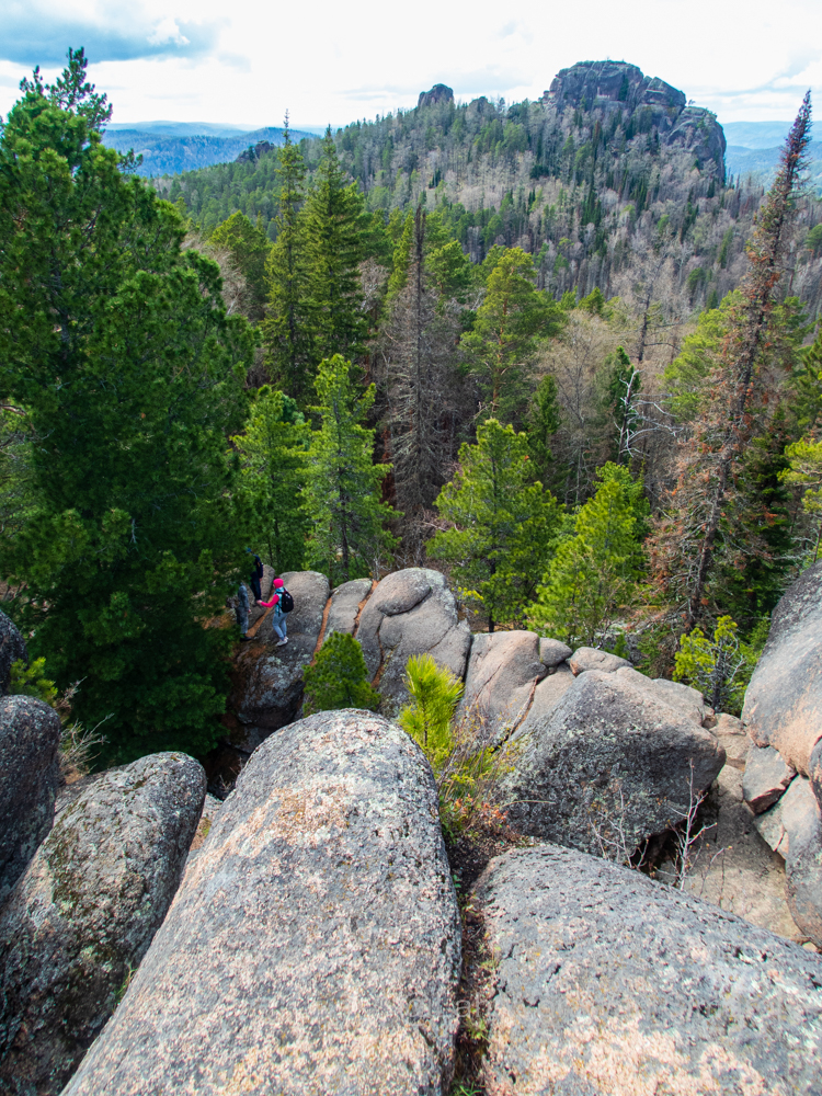 จุดที่ให้นักท่องเที่ยวทั่วไปเข้าไปเดินป่า ปีนเขาชมธรรมชาติได้นั้นมีอยู่สองทาง ทางหนึ่งต้องเดินเท้าเข้าไปจากปากทางไปจนถึงศูนย์นิทรรศการของอุทยานฯ ทางเข้าเทรลดูแท่งหิน ระยะทางประมาณ 7 กม. ถ้าขออนุญาตล่วงหน้าเป็นพิเศษสามารถเอารถเข้าไปถึงตรงจุดนี้ได้ ก็จะย่นระยะทางลงไปหน่อย จากนั้นก็จะเป็นการเดินวนชมแท่งหินต่างๆ โดยหลักๆมีอยู่ 4 กลุ่ม แต่ละกลุ่มก็จะมีชื่อเรียกตามลักษณะของแท่งหินแตกต่างๆกัน เช่น Grandfather Rocks ที่มองจากมุมหนึ่งแล้วจะเห็นเหมือนหน้าคนขนาดยักษ์ Feather Rocks ที่มีหินขนาดใหญ่ตั้งในแนวตั้งเหมือนเป็นแผ่นหินบางๆซ้อนกัน ที่นีเป็นที่ปีนเขามือเปล่าปราบเซียนยอดนิยม ที่เคยมีนักปีนเขาชื่อดังของรัสเซียตกลงมาตายต่อหน้าต่อตาผู้ที่มาเฝ้าชมการปีนเขานับร้อยคน รวมถึงลูกและเมียของเขาด้วย และ Sinner Rocks เป็นหินขนาดใหญ่ที่ค้างอยู่ระหว่างภูเขาหินสองฝั่งในลักษณะที่หมิ่นเหม่ ไม่รู้จะตกลงมาเมื่อไร เขาว่าถ้าไปยื่นใต้ก้อนหินนั้นแล้วตบมือดังๆสามที ถ้าหินไม่ตกลงมาก็แสดงว่าคนนั้นไม่มีบาปอะไรติดตัว เป็นต้น นอกจากเดินวนชมหินตามเทรลด้านล่างแล้ว ก็สามารถไต่ขึ้นไปตามแนวแท่งหินเพื่อขึ้นไปบนยอดได้บางส่วน (ค่อนข้างวิบากพอควร) บางส่วนก็ต้องเป็นนักไต่ผาถึงจะขึ้นไปพิชิตได้ ส่วนทางเข้าอีกทางหนึ่งซึ่งอยู่คนละด้านของอุทยานฯ จะมองเห็นหินตั้งขึ้นเป็นกำแพงสูงอยู่บนเขา มองเห็นได้จากในเมือง ส่วนนี้ถ้าไม่เดินเทรกกิ้งไป ก็สามารถนั่งกระเช้าเล่นสกีขึ้นไปเพื่อย่นระยะทางในการเดินชมได้ แท่งหินแปลกตาที่กล่าวมาทั้งหมดเป็นหินอัคนี ที่เรียกว่า Syenites อายุเกินกว่า 350 ล้านปี
