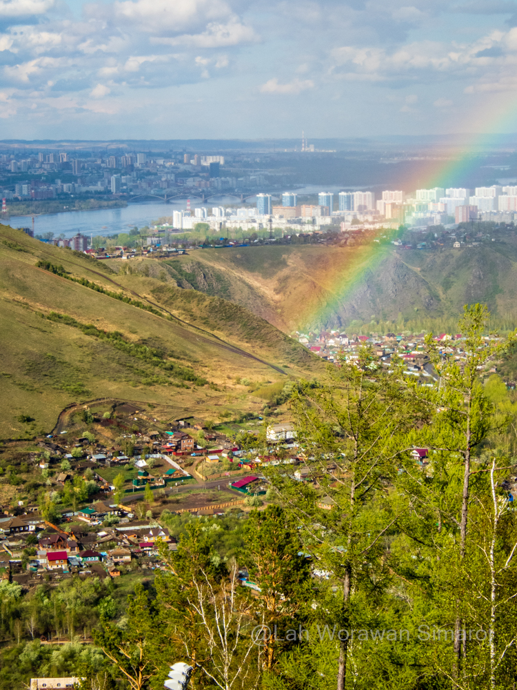 หลังจากที่เขียนเรื่องราวเกี่ยวกับเมืองต่างๆที่สามารถแวะท่องเที่ยวได้ หากเดินทางตามเส้นทางรถไฟสายทรานส์ไซบีเรียมาจากทางทิศตะวันออก ครั้งนี้ฉันขอแนะนำเมืองในเส้นทางอีกเมืองหนึ่งในไซบีเรียตะวันออกก่อนที่จะเข้าสู่ไซบีเรียตะวันตกที่น่าสนใจไม่น้อย หากจะเปลี่ยนบรรยากาศจากการนั่งรถไฟ เข้าไปชมเมืองและธรรมชาติรอบๆดูบ้าง เมือง Krasnoyarsk (คราสโนยาร์สค์) เป็นเมืองที่ถือกำเนิดขึ้นจากการตั้งค่ายป้อมปราการของกลุ่มคอสแซค (Cossacks) ร่วมกับชาวพื้นเมืองเดิม เพื่อป้องกันข้าศึกจากมองโกลในปี คศ 1628 ป้อมปราการนี้มีชื่อว่า Krasny Yar (คราสนียาร์) ซึ่งเป็นที่มาของชื่อเมืองในเวลาต่อมา ตัวป้อมสร้างอยู่ตรงจุดบรรจบของแม่น้ำสองสายคือ Yenisey (เยนิเซ) และ Reka Kacha (เรกะคาช่า) ซึ่งต่อมาได้กลายเป็นศูนย์กลางของการค้าขนสัตว์ในไซบีเรีย โดยเฉพาะอย่างยิ่งขนตัว Sable (ฉันขอเรียกว่า หมาไม้ไซบีเรีย) ในช่วงต้นศตวรรษที่ 19 ตัวเมืองขยายใหญ่ขึ้นในยุคตื่นทองช่วงปี 1840-1850 และยิ่งบูมมากขึ้นเมื่อทางรถไฟสายทรานส์ไซบีเรียมาถึงเมื่อปีทศวรรษ 1890s ที่นี่เป็นที่ตั้งโรงงานผลิตอาวุธที่สำคัญของกองทัพแดง Red Army โดยเฉพาะปืนใหญ่ในช่วงสงครามโลกครั้งที่ 2 (ว่ากันว่ามากกว่าครึ่งหนึ่งของประชากรในเมืองนี้สังเวยชีวิตให้กับสงครามโลกครั้งนั้น) ในปัจจุบันแม้จะไม่มีป้อมปราการเดิมหลงเหลืออยู่แล้ว แต่พื้นที่บริเวณนี้ได้พัฒนาขึ้นมาจนกลายเป็นตัวเมืองในปัจจุบันที่ถือว่าใหญ่เป็นอันดับ 3 ของเมืองในไซบีเรีย มีประชากรประมาณ 1 ล้านคนจากทั่วภูมิภาค (ภูมิภาค Krasnoyarsk Krai ที่มีขนาดประมาณ 3 เท่าของประเทศฝรั่งเศส) ที่มีอยู่ 2.8 ล้านคน Krasnoyarsk ตั้งอยู่ประมาณกึ่งกลางของเส้นทางรถไฟสายทรานส์ไซบีเรียพอดี (ถ้านั่งรถไฟมาจาก Irkutsk (เอียร์คุสต์) เมืองศูนย์กลางเวลาไปเที่ยวทะเลสาบไบคาล ใช้เวลาประมาณ 18 ชั่วโมง ระยะทางประมาณพันกว่ากิโลเมตร)