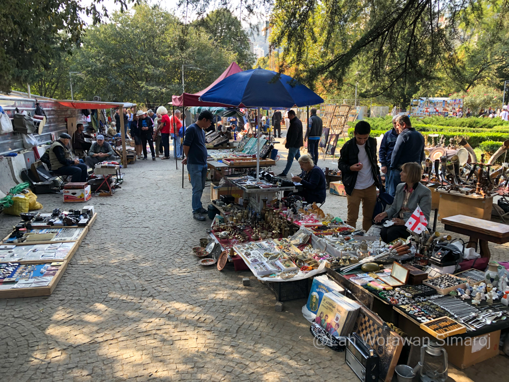 หากมาที่เมืองนี้ตรงกับวันเสาร์อาทิตย์ก็สามารถไปเดินเล่นที่ Tbilisi Street Market ที่มีการออกร้านรวงขายงานศิลป์และของทำมือต่างๆของชาวจอร์เจียรุ่นใหม่ บริเวณนี้จะอยู่ใกล้ๆกับอาคารรัฐสภากับพิพิธภัณฑ์ศิลปะ Modern Art Museum โดยเขาจะเริ่มตั้งร้านประมาณสายๆของวัน เนื่องจากฉันเลือกที่จะเดินไปยังตลาดดังกล่าว แม้จะใช้เวลาพอสมควร แต่กลับกลายเป็นว่าฉันต้องติดอยู่กับตลาดขายของมือสอง (Flea Market) ริมถนนและในสวนสาธารณะระหว่างทางอยู่เป็นเวลานาน เท่านั้นยังไม่พอ หลังจากผ่านตลาดมือสองได้ไม่นาน ก็ยังไปเจอกับปากคลองตลาดแห่ง Tbilisi อันเป็นตลาดแผงขายดอกไม้ล้วนๆ มีดอกไม้สวยๆแปลกตามากมายชวนให้หยุดถ่ายรูปได้ไม่รู้เบื่อเข้าอีก จากประสบการณ์การเดินเที่ยวเมืองมาสองวัน ฉันเชื่อเหลือเกินว่าถ้าเลือกที่จะใช้ขาเดินชมเมืองหลวงแห่งนี้แล้ว ก็คงได้เจออะไรที่ฮิปๆแบบไม่คาดคิดได้ตลอดทางสมกับที่มีคนให้สมญานามเมืองหลวงแห่งนี้ว่าเป็นเมืองที่มีความเป็นโบฮีเมียนที่สุดแห่งหนึ่งของโลกกันเลยทีเดียว