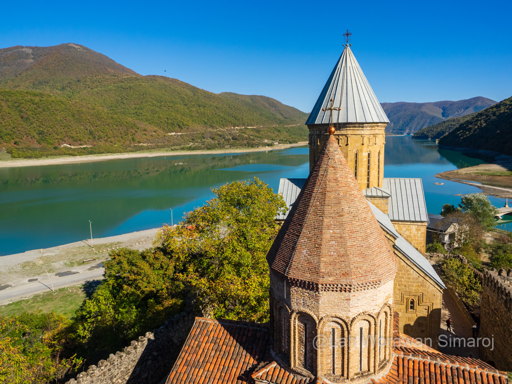 ไม่ว่าจะขับรถเที่ยวเองหรือใช้บริการรถโดยสารหรือรถทัวร์ หากออกจากเมืองหลวงขึ้นไปทางเหนือบนเส้นทางสายนี้แล้ว จุดแรกที่ต้องแวะพักคงหนีไม่พ้น Ananuri Fortress (ป้อมปราการอานานุรี) โบราณสถานเก่าแก่กว่า 400 ปีที่ตั้งอยู่บนเนินเขาเหนืออ่างเก็บน้ำสีเทอร์ควอยซ์ Zhinvali (ซินวาลิ) ที่นี่สร้างขึ้นมาครั้งแรกให้เป็นทั้งปราสาทและป้อมปราการของ Dukes of Aragvi (ดรุคแห่งอารักวี) ซึ่งปกครองดินแดนแถบนี้ในสมัยก่อน เคยผ่านการรบมาหลายสนาม จนโดนข้าศึกเผาทำลายเอาเมื่อปี ค.ศ. 1739 ส่วนตำนานที่มาของชื่อนั้น เล่ากันต่อมาว่าในช่วงที่ปราสาทกำลังถูกข้าศึกล้อมไว้นั้น คนในปราสาทสามารถต่อสู้อยู่ได้อย่างทรหดเพราะที่นี่มีอุโมงค์ลับที่สามารถส่งข้าวส่งน้ำผ่านเข้าไปให้คนข้างในได้ จนท้ายที่สุดข้าศึกจับหญิงสาวที่ชื่อ Ana จากเมือง Nuri ไว้ได้และบังคับขู่เข็ญให้บอกว่าอุโมงค์ลับนั้นอยู่ที่ไหน แต่หญิงสาวเลือกที่จะยอมสละชีวิตแทนที่จะขายความลับ สถานที่แห่งนี้ต่อมาจึงรู้จักกันในนามว่า Ananuri อย่างไรก็ดี ตัวป้อมปราการในปัจจุบันกลายเป็นซากปรักหักพังเสียส่วนใหญ่ โดยมีหอคอยสี่เหลี่ยมขนาดใหญ่และกำแพงหลงเหลืออยู่ให้เห็น ในขณะที่สิ่งก่อสร้างที่ดูสมบูรณ์และเด่นกว่าที่ซ้อนอยู่บนซากปรักหักพังก็คือโบสถ์ 2 แห่ง โดยโบสถ์ที่เก่ากว่าเรียกว่า “Church of Virgin” อยู่ติดกับหอคอยและเป็นที่ตั้งของหลุมศพของเหล่า Dukes of Aragvi กับอีกโบสถ์ที่มีขนาดใหญ่โตกว่าที่ยังคงมีภาพเขียนสีหลงเหลืออยู่ให้เห็น บริเวณรอบๆ โบราณสถานแห่งนี้มีร้านขายของที่ระลึก ร้านอาหารและห้องน้ำให้เข้า ถือเป็นจุดพักระหว่างทางอย่างดีก่อนที่เส้นทางจะเริ่มคดเคี้ยวขึ้นสู่ที่สูงต่อไป