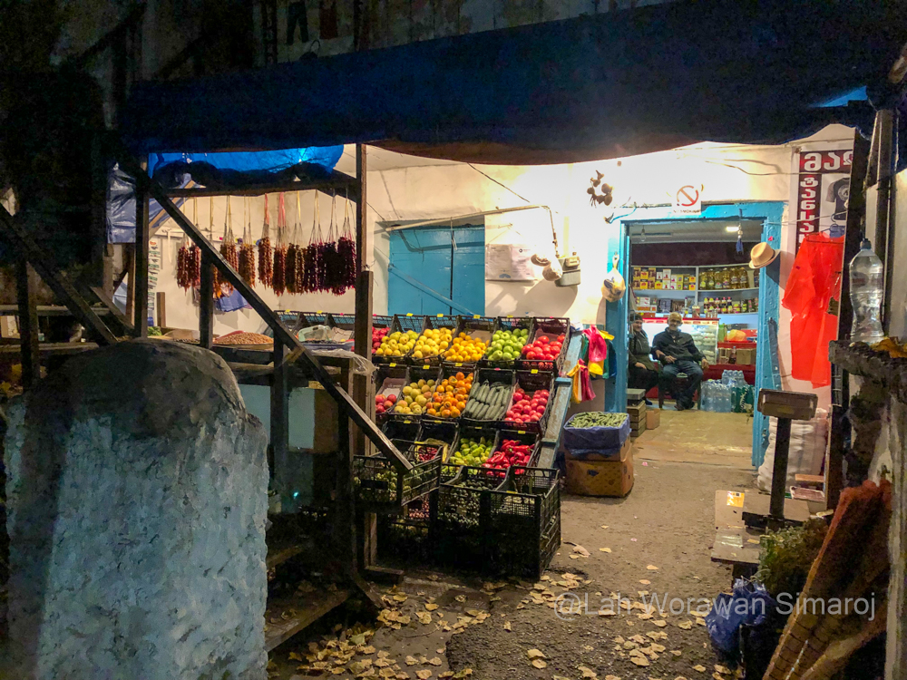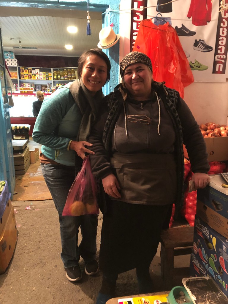 ผู้เขียนกับแม่ค้าร้านขายของชำเล็กๆในเมือง Kazbek