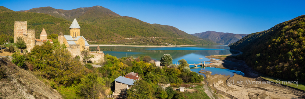 หากใครได้เคยหาข้อมูลท่องเที่ยวประเทศจอร์เจียมาบ้าง ภาพหนึ่งของแลนด์มาร์กที่น่าจะต้องเคยเห็นบ้างคงหนีไม่พ้นอาคารเก่าแก่เล็กๆ สองหลังของโบสถ์แห่งหนึ่งที่ตั้งอยู่บนยอดเขาทุ่งหญ้าโล่งๆ ดูโดดเดี่ยวท่ามกลางเทือกเขามหึมาที่ซ้อนอยู่ด้านหลังอีกทีหนึ่ง ภาพที่ทำเอาหลายๆ คนปักหมุดสถานที่ที่ควรไปเยือนหากได้ไปจอร์เจียกันเลยทีเดียว โบสถ์เล็กๆ แห่งนี้ตั้งอยู่ในหมู่บ้านเล็กๆ เกือบๆ ชายขอบจอร์เจียที่มีเทือกเขาคอเคซัสเป็นแนวพรมแดน ตั้งอยู่ห่างออกไปทางเหนือของเมืองหลวง Tbilisi (ทบิลิซี)ประมาณ 150 กว่ากิโลเมตร ตามถนนสายหลัก Georgian Military Highway (จอร์เจียนมิลิทารี่ไฮเวย์) ที่สามารถทะลุต่อไปยังประเทศรัสเซียได้ บทความสุดท้ายเกี่ยวกับประเทศจอร์เจียในครั้งนี้ ฉันขอพาไปรู้จักสถานที่ต่างๆ ตามถนนสายนี้กัน