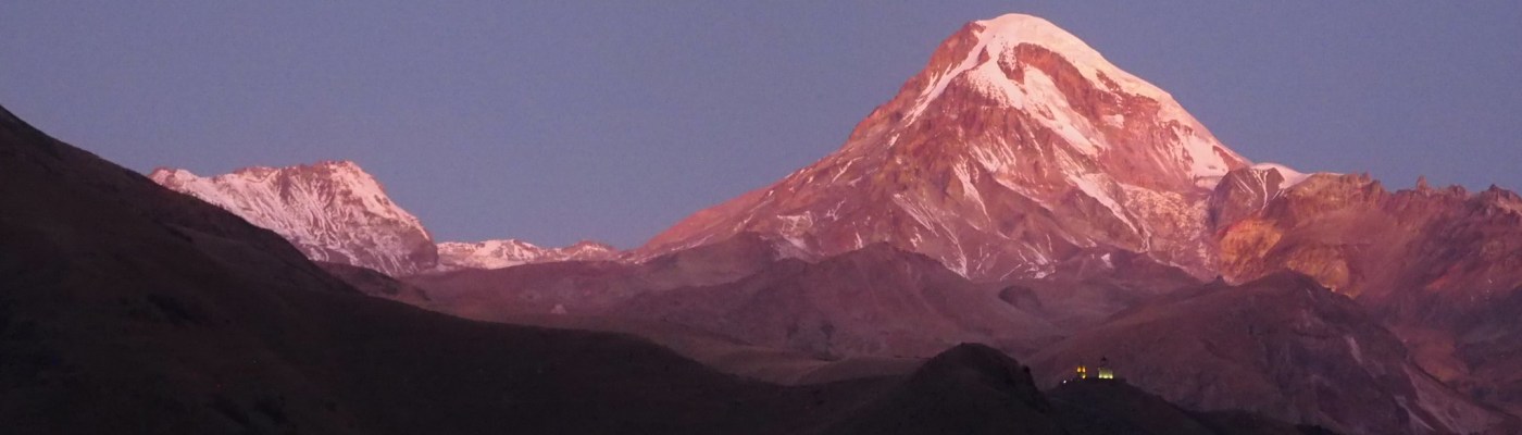 ฉันใช้เวลาอยู่ที่นี่สามวันสองคืนเพื่อชื่นชมความงามของ Mt. Kazbek และบริเวณโดยรอบ ซึ่งถือว่าคุ้มค่ากับการเดินทางมาก ไม่ว่าจะตื่นมาชมแต่เช้าตรู่ หรือยามเย็น หรือยามไหนๆก็ตาม (ดูรูปภูเขาในช่วงเวลาต่างๆของวันประกอบ) ตามข้อมูลที่หาได้ ยอดเขา Kazbek แห่งนี้เป็นยอดเขาภูเขาไฟ (ยังไม่ดับสนิท) ที่สูงเป็นอันดับสองของเทือกเขาคอเคซัส (ถ้านับทุกยอด จะสูงเป็นอันดับเจ็ด) นอกจากการชื่นชมเทือกเขา ชมโบสถ์ เดินชมหมู่บ้านที่มีร้านค้า ร้านอาหารที่คึกคักเพราะนักท่องเที่ยวแล้ว จากหมู่บ้านนี้ไปไม่ถึง 20 กิโลเมตรจะถึงชายแดนจอร์เจียและรัสเซีย (เมือง Vladikavkaz) ซึ่งไม่ใช่ชายแดนที่ถนนตัดข้ามเขา แต่เป็นการเจาะอุโมงค์ลอดพรมแดนธรรมชาติแห่งเทือกเขาคอเคซัสแทน เรียกว่าขับมุดถ้ำจากประเทศหนึ่งออกไปเจออีกประเทศหนึ่ง (หากขับรถมาเองสามารถขับไปถึงชายแดนได้ แต่ถนนจะค่อนข้างแคบและคดโค้ง ควรขับรถด้วยความระมัดระวัง)